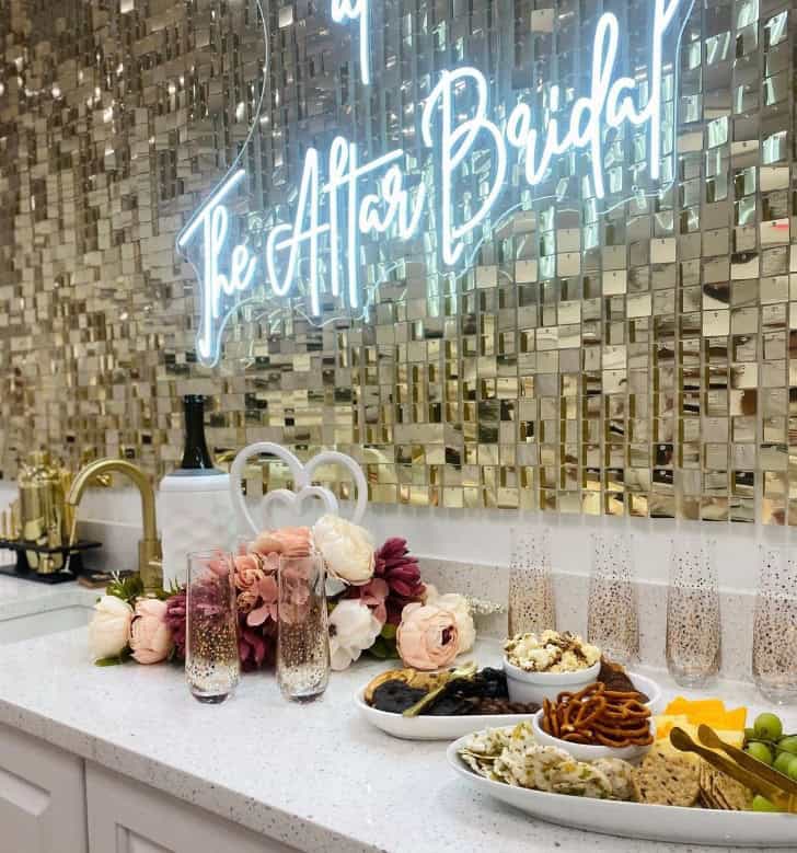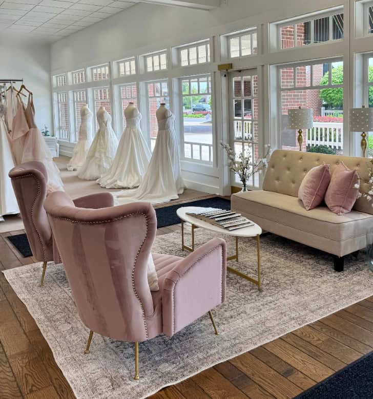 We are Illinois’s largest off-the-rack bridal boutique at 10,000 sq ft and carry over 1,000 new and sample wedding dresses in sizes 0-30. You are sure to find your dream dress and can take it home the same day! We have 7 oversized dressing rooms to ensure our brides are comfortable while trying on gowns. In addition, we have an alterations team on-site.